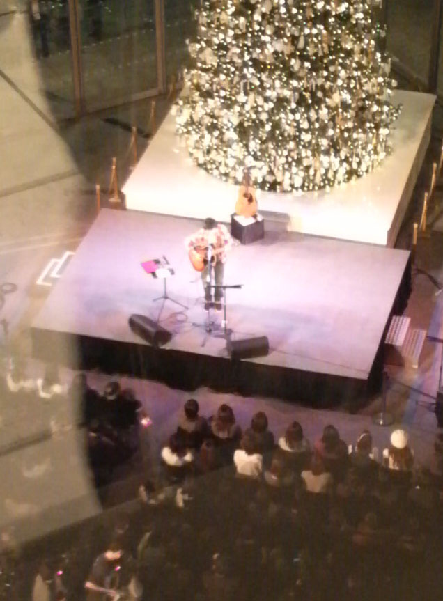 生歌ですよ。でも行ったらもう人がたくさんいて、4階のガラス